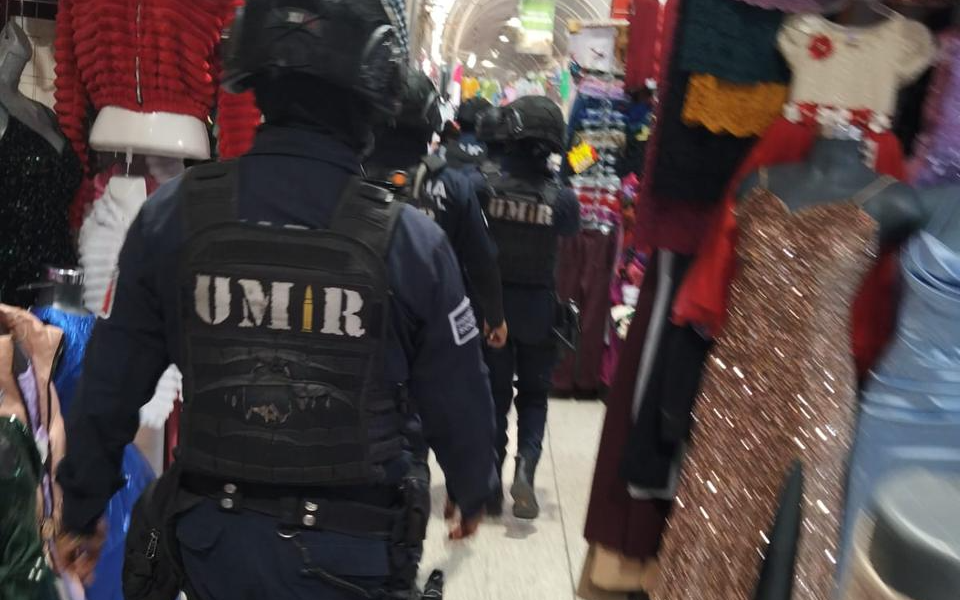 La Secretaría de Seguridad y Protección Ciudadana intensificó los operativos de vigilancia en mercados municipales, zonas comerciales del Centro Histórico y distintos cuadrantes de la ciudad, ante el incremento de visitantes que realizan compras por la temporada decembrina.